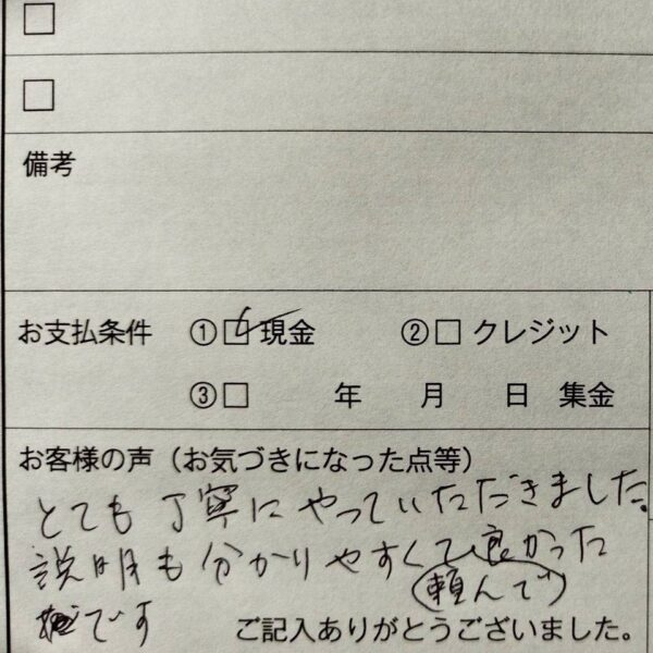 とても丁寧にやっていただきました。説明も分かりやすく、頼んでよかったです。